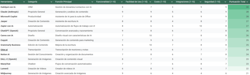 - Ajuste organizacional: ¿La herramienta se alinea con la misión y los objetivos a largo plazo de nuestra organización sin fines de lucro?